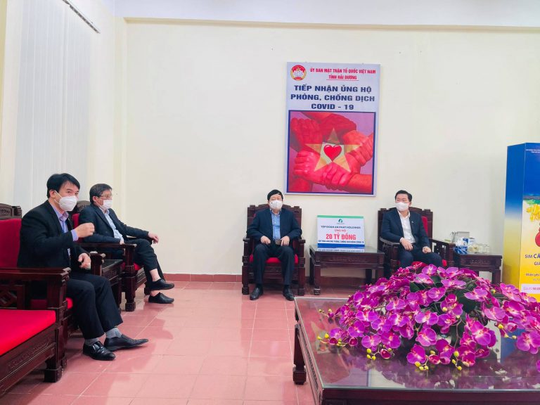 Có mặt tại trụ sở Uỷ ban Mặt trận Tổ quốc Việt Nam tỉnh Hải Dương, đại diện BLĐ Tập đoàn An Phát Holdings, ông Phạm Văn Tuấn – Quyền Phó Tổng Giám đốc Tập đoàn đã trực tiếp trao 20 tỷ đồng cho đại diện chính quyền tỉnh Hải Dương nhằm hỗ trợ công tác triển khai mua vaccine Covid-19 cho người dân Hải Dương. Lãnh đạo tỉnh Hải Dương đã trực tiếp tiếp nhận hỗ trợ từ APH và gửi lời cảm ơn tới Ban lãnh đạo và tập thể CBNV An Phát Holdings.